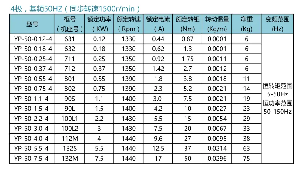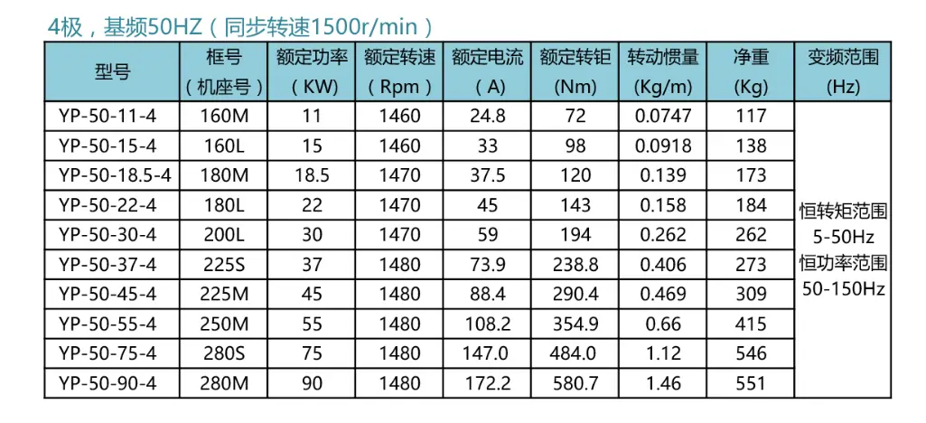 YP變頻系列4極型號