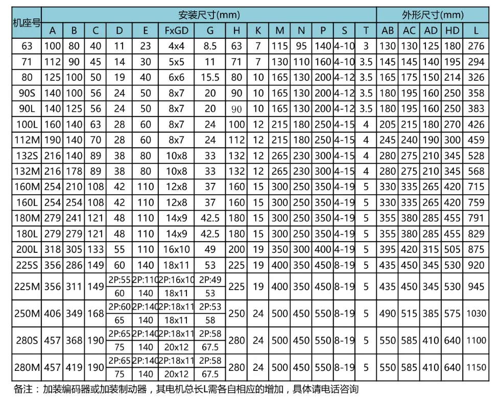 YP變頻系列4極型號