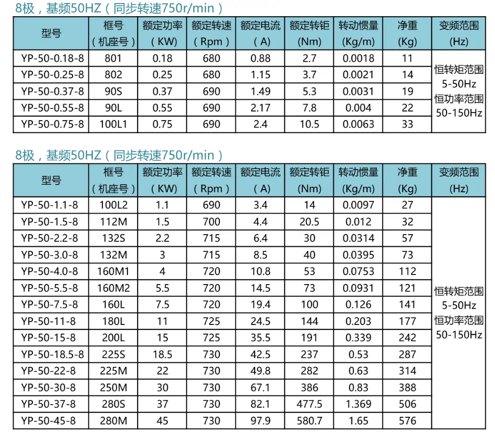 YP-50-11-8 YP-50-15-8 YP-50-18.5-8 YP-50-22-8 YP-50-30-8